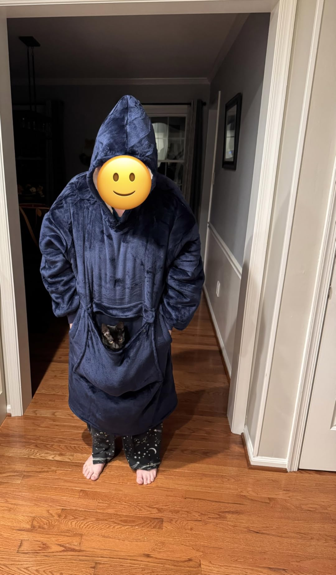 Yes, the large front pocket is useful for warming hands and holding small items like your phone or remote.