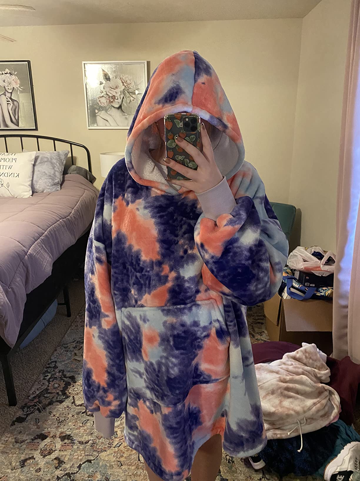 The Warmova hoodie blanket comes in a single "One Size Fits All" designed to be very roomy and comfortable for everyone.